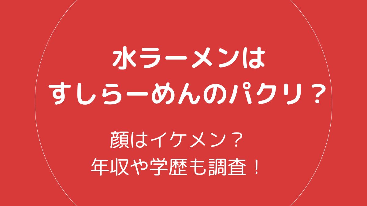 今回は水ラーメンはすしらーめんのパクリ?顔はイケメン?年収や学歴も調査!と題してお送りします。